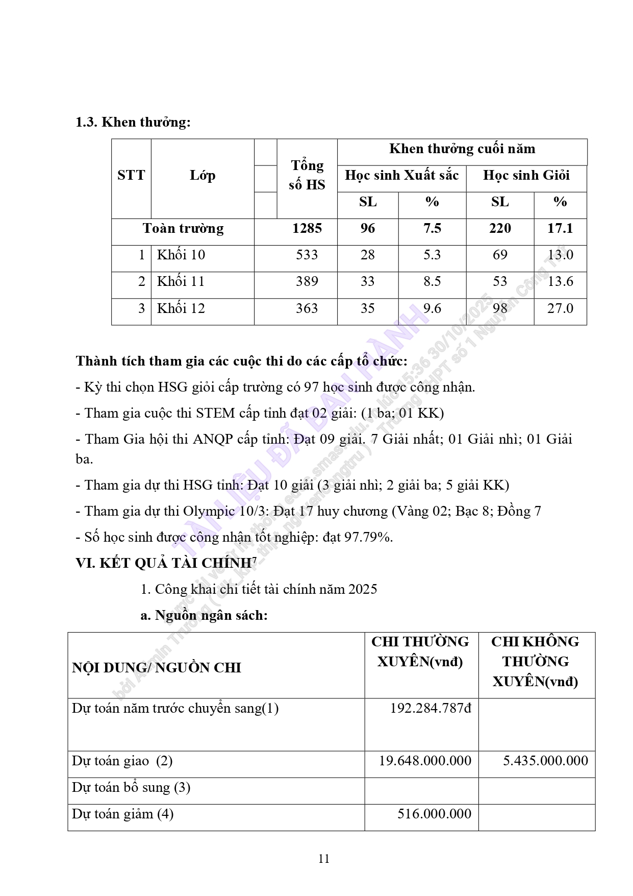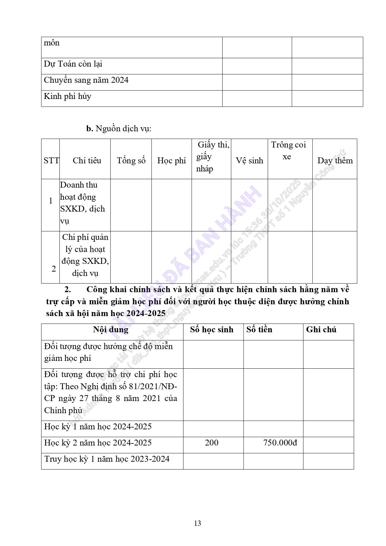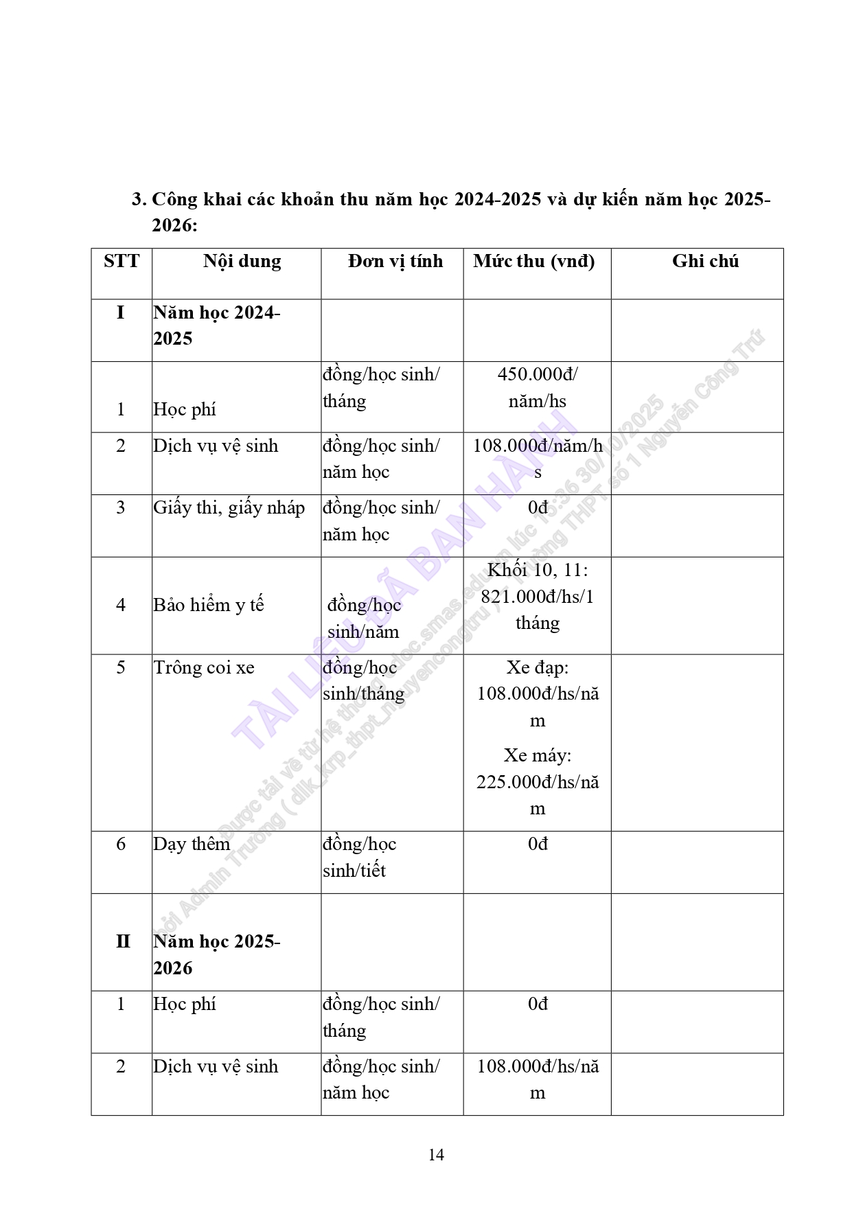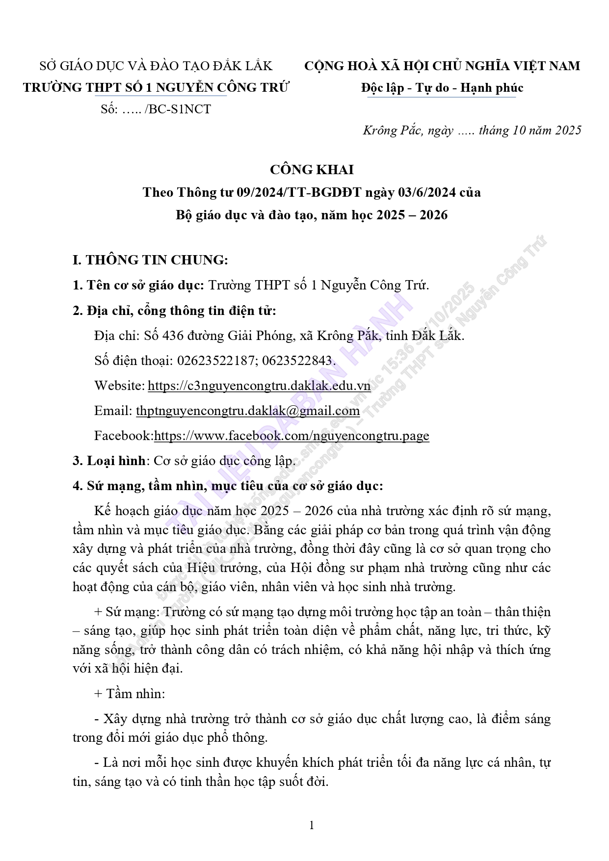 Công khai theo Thông tư 09/2024/TT-BGDĐT ngày 03/6/2024 của Bộ Giáo dục và Đào tạo, năm học 2025-2026 (NCTr Online)