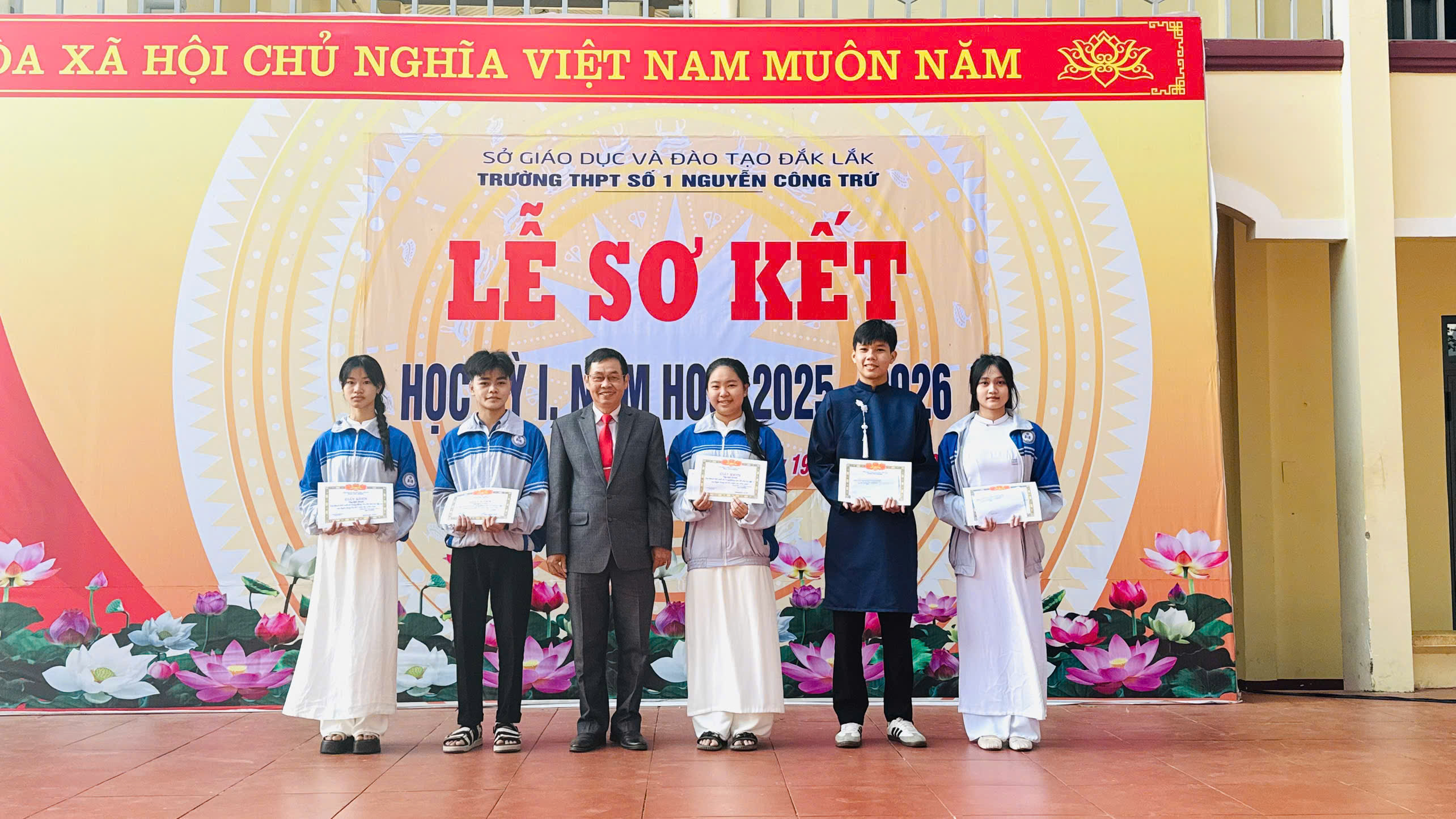 Trong không khí vui tươi chào mừng năm mới 2026, vào sáng ngày 19 tháng 01 năm 2026, trường THPT Số 1 Nguyễn Công Trứ – Krông Pắc – Đắk Lắk đã long trọng tổ chức Lễ Sơ kết học kỳ I, năm học 2025 – 2026. Buổi lễ là dịp để nhìn lại những kết quả đã đạt được trong học kỳ vừa qua và đề ra những phương hướng phát triển trong học kỳ tới.